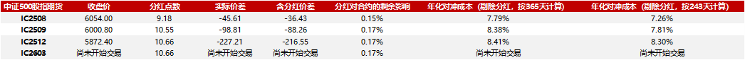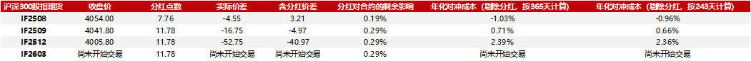 (源头:东方金工参议) 撮要投资冷漠 ]article_adlist-->凭据最新的分成预测模子,法则2025年7月18日,咱们冷漠投资者温存以下8月期指合约契机: 上证50指数期货(IH):刻下呈轻度升水状态,年化对冲本钱为 -3.44%。冷漠投资者温存该指数期货短期正向套利契机,得当商酌合手有空头对冲头寸以愚弄相对较低的对冲本钱上风。 沪深300指数期货(IF):年化对冲本钱为 -1.03%,处于靠拢中性水平的微升水。冷漠投资者审慎参与套利战略,稀奇温存近期齐集分成所带来的基差波动,当令调换头寸布局。 中证500指数期货(IC)和中证1000指数期货(IM):当今均呈现深贴水状态,年化对冲本钱差别为7.79%和11.11%。咱们冷漠投资者温存中小盘期指的阶段性贴水套利契机,但需充分评估对冲本钱压力及阛阓波动性,有关战略更得当具备套利实施智商与风险处理训戒的投资者适度布局。 01 2025分成最新预测收尾 阛阓越有用,咱们要驯顺敌手就需要越早越准确地获得信息,有了夙昔的训戒,一经有更多的投资者驱动温存分成。凭据往年的训戒,瞻望2025年的指数身分股分成仍将齐集在5-7月,因此,分成关于存续期涵盖5-7月的期指合约订价齐将有权贵的影响。当今8月、9月和12月合约一经上市来往,7月合约行将到期而2026年3月合约行将驱动来往,咱们有必要提前对分成比例有一个合理的预测。 上市公司已渐渐公布分成信息,截止7月18日,上证50身分股中,40家实施,10家鼓舞大和会过,沪深300身分股中,230家实施,70家鼓舞大和会过,中证500身分股中,379家实施,120家鼓舞大和会过,1家董事会预案,中证1000身分股中,749家实施,251家鼓舞大和会过。 凭据咱们的最新预测模子,上证50、沪深300、中证500、中证1000指数8月合约的分成点数差别为3.62、7.76、9.18、6.25。若商酌空头对冲并合手有股指期货合约到期,年化基差率即反馈了合手有至到期的对冲本钱。上证50、沪深300、中证500指数、中证1000的8月合约的年化对冲本钱(剔除分成,按365天磋磨)差别为 -3.44%、-1.03%、7.79%、11.11%。分成对股指期货各指数期货合约影响介怀如下: 上证50股指期货: ![]() 沪深300股指期货: ![]() 中证500股指期货: ![]() 中证1000股指期货: ![]() 将来分成对上证50期货价钱的剩余影响(指数点): ![]() 将来分成对沪深300期货价钱的剩余影响(指数点): ![]() 将来分成对中证500期货价钱的剩余影响(指数点): ![]() 将来分成对中证1000期货价钱的剩余影响(指数点): ![]() 风险请示 咱们对分成的预测基于一系列的合理假定。若是阛阓环境发生突变,举例分成率发生大的变化,那么预测收尾可能与实质分成有相反。 评释: 本订阅号贵府基于东方证券股份有限公司已发布证券参议叙述制作。 证券参议叙述:《IH轻度升水,IC及IM深贴水,温存中小盘贴水套利契机》 发布日历:2025年07月18日 分析师:刘静涵 执业文凭编号:S0860520080003 分析师:杨怡玲 执业文凭编号:S0860523040002 热切请示(朝上滑动浏览): 本订阅号为东方证券股份有限公司(以下称“东方证券”)参议所金融工程参议团队运营的独一订阅号,并非东方证券参议叙述的发布平台, 本订阅号仅转发东方证券已发布参议叙述的部天职开心对叙述进行的追踪与解读。通过本订阅号发布的贵府仅供东方证券参议所指定客户参考。因本订阅号无法配置走访限度,若您并非东方证券参议所指定客户,为阻挡投资风险,请您请取消温存,请勿订阅、接纳或使用本订阅号中的任何信息。东方证券不因任何单纯订阅本公众号的行径而将订阅东谈主视为客户。 免责声明(朝上滑动浏览): ]article_adlist-->本订阅号不是东方证券参议叙述的发布平台,本订阅号仅转发东方证券已发布参议叙述的部天职开心对叙述进行的追踪与解读, 订阅者若使用本订阅号所载贵府,有可能会因短少对齐全叙述的了解或短少有关的解读而对贵府中的内容产生相接上的歧义。提请订阅者参阅东方证券已发布的齐全证券参议叙述,仔细阅读其所附风险请示、各项声明及信息深切,温存有关的分析、预测省略开采的重要假定条目,温存投资评级和证券磋磨价钱的预测技术周期,并准确相接投资评级的含义。订阅者如使用本贵府,请与您的投资代表关联。在职何情况下,本订阅号中的信息或所表述的主张并不组成对任何东谈主的投资冷漠,也无法商酌到客户个体很是的投资磋磨、财务情景或需求,客户应试虑本订阅号中的任何主张或冷漠是否相宜其特定情景,严慎合理使用。本订阅号所载的贵府、用具、主张及推断只提供给客户作参考之用,并非当作或被视为出售或购买证券或其他投资场地的邀请或向东谈主作出邀请。 在职何情况下,东方证券对本订阅号所载贵府的准确性、可靠性、时效性及齐全性不作任何昭示或默示的保证。东方证券及关联东谈主员不合任何东谈主因使用本订阅号中的任何内容所引致的任何赔本负任何牵累,投资者应自主作出投资决议并自行承担投资风险。 东方证券不保证本订阅号中的不雅点或述说不会发生任何变更,在不同期期,东方证券可发出与本叙述所载贵府、主张及推断不一致的证券参议叙述。 本订阅号发布的内容仅为东方证券通盘。未经东方证券预先书面契约授权,任何机构或个东谈主不得以任何体式复制、转发或援用本订阅号的沿路或部天职容,亦不得从未经东方证券书面授权的任何机构、个东谈主或其运营的媒体平台接纳、复制、转发