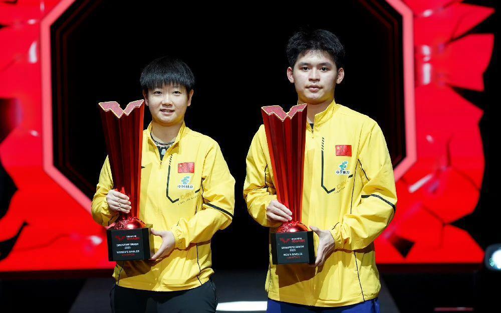 混双林诗栋络续搭档蒯曼,在决赛打败日本组合松岛辉空/张本好意思和,确保国乒拿到冠军,男双搭档王楚钦进展不俗,先胜法国组合费利克斯/艾利克斯,再赢中国台北组合林昀儒/高承睿,拿到个东谈主的第二冠,男片面会师队友,最终林诗栋4-2征服梁靖崑,三项一齐夺冠,得益超过了预期。