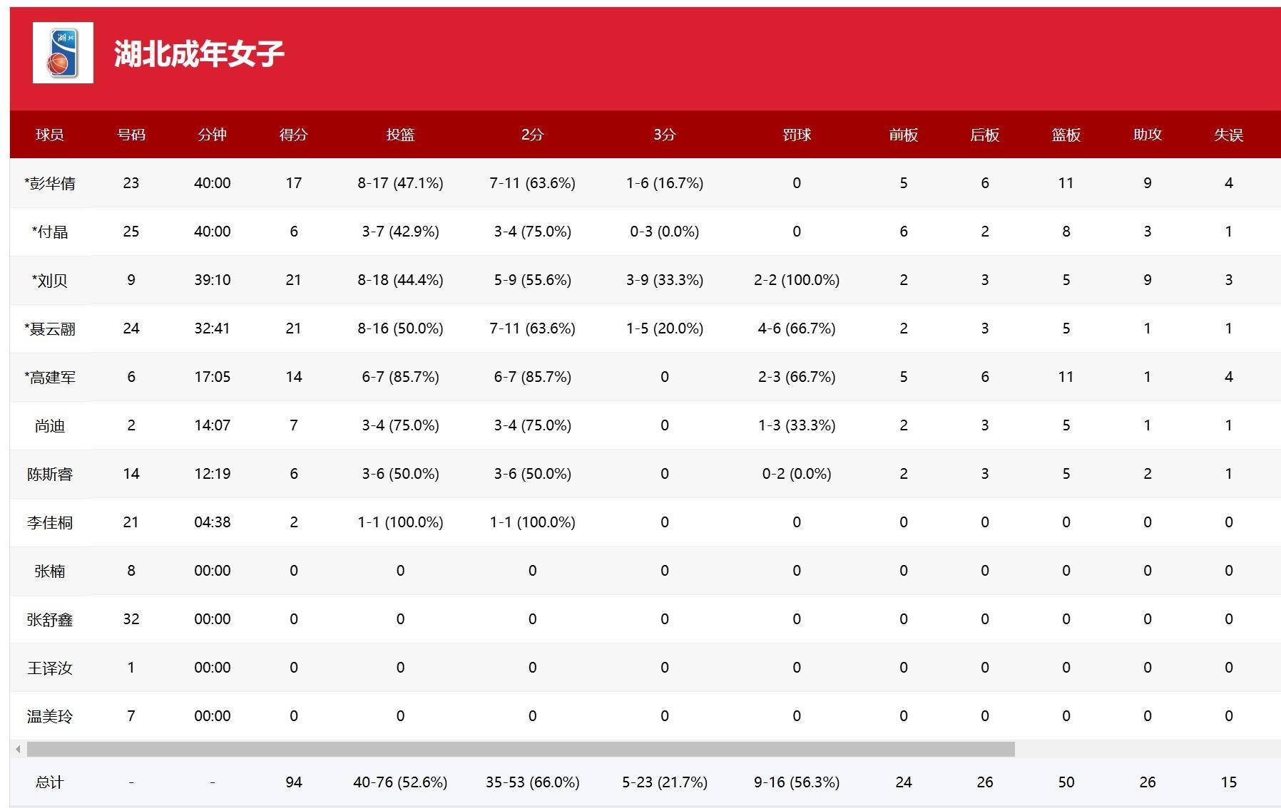 彭华倩在篮下11投7中,共拿下17分11篮板9助攻的准三双数据;刘贝9投5中获得21分,雷同有5篮板9助攻;高中锋高建军天然只出场17分钟,也有14分和11篮板进账。